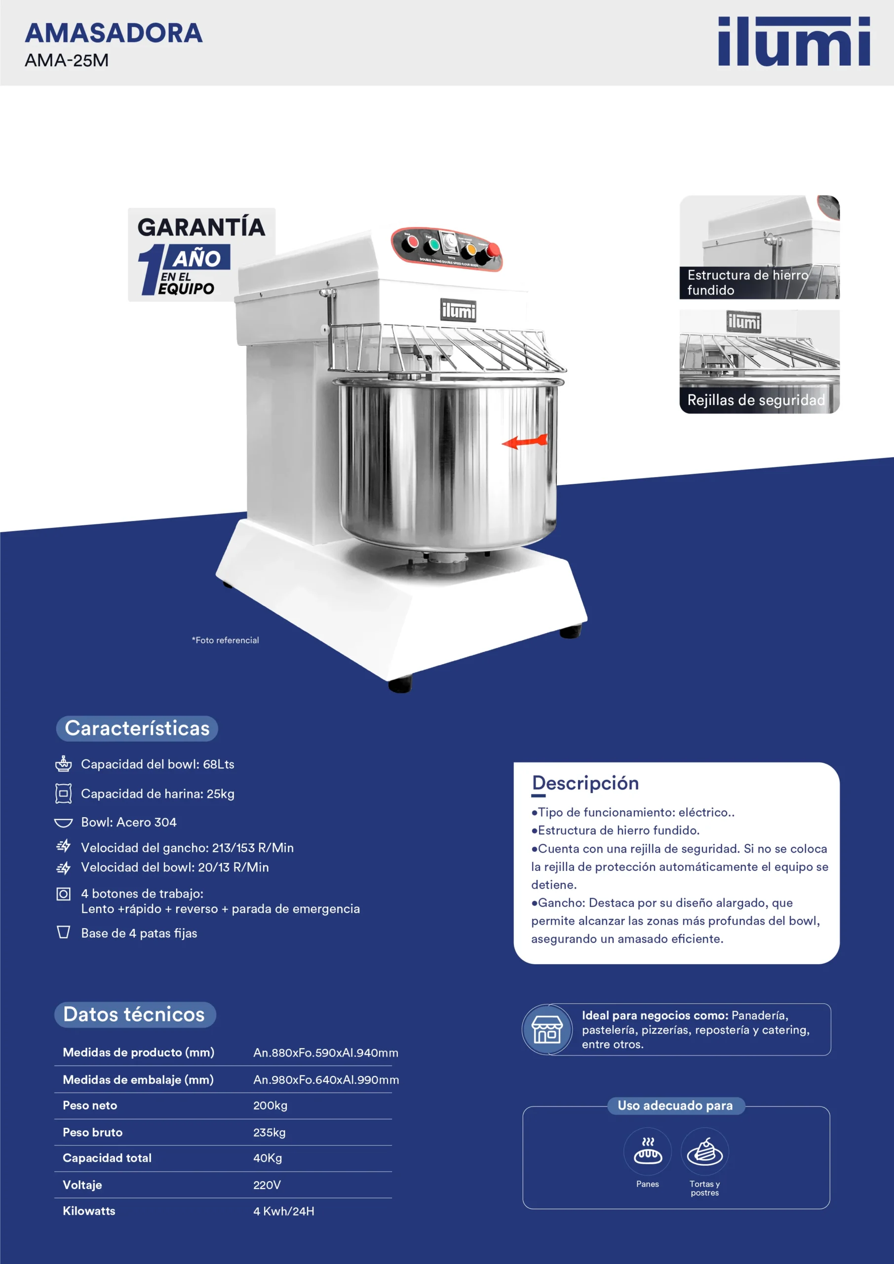 - Capacidad: 25Kg