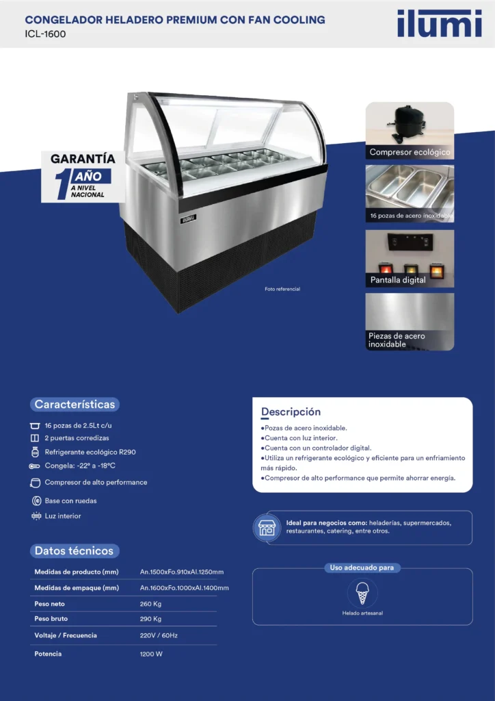 El congelador heladero premium es la elección perfecta para aquellos que buscan una solución de alta calidad para almacenar y exhibir helados de manera eficiente. Diseñado para mantener una temperatura constante que asegura la textura y el sabor de los helados.