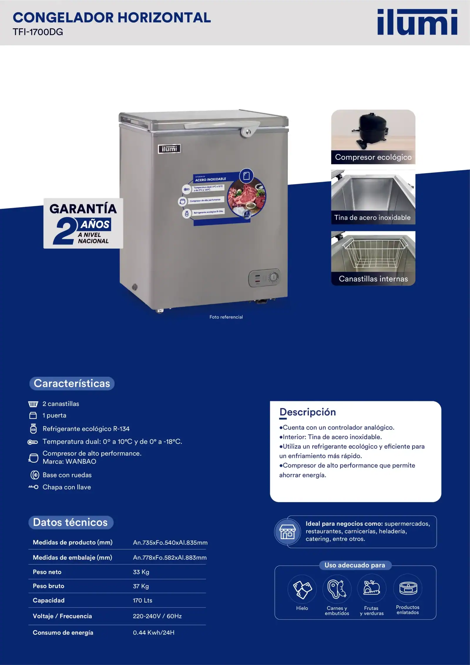 La Congeladora con Tina de Acero 170Lts TFI-1700DG Asegura la conservación de tus productos congelados con nuestras congeladoras de alto rendimiento. Con un enfoque en la eficiencia energética y la durabilidad, nuestras congeladoras ofrecen la solución perfecta para un almacenamiento seguro y fiable.