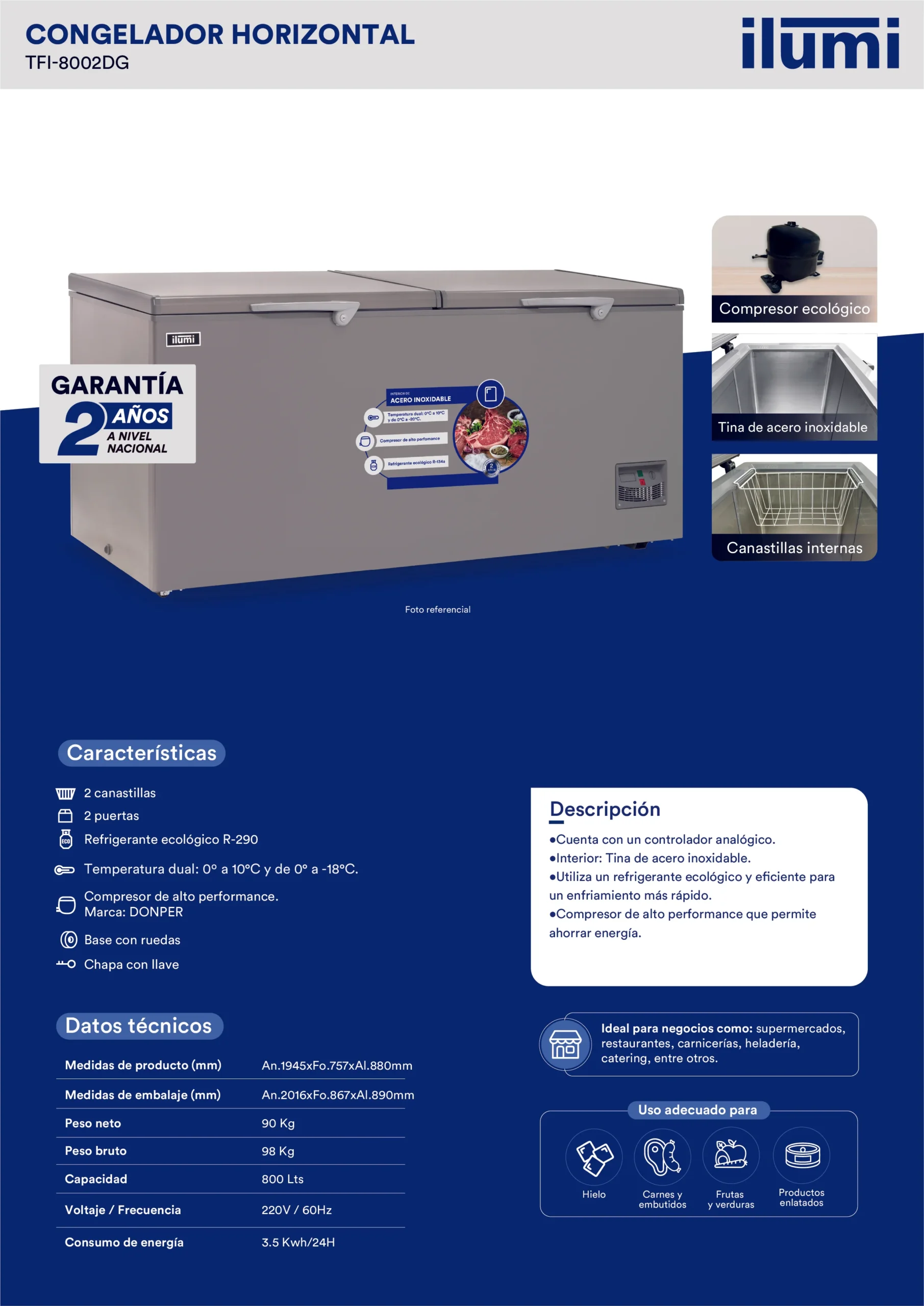La Congeladora con Tina de Acero 800lts TFI-8002DG asegura la conservación y congelamientos de tus productos congelados con nuestras congeladoras de alto rendimiento. Con un enfoque en la eficiencia energética y la durabilidad, nuestras congeladoras ofrecen la solución perfecta para un almacenamiento seguro y fiable.