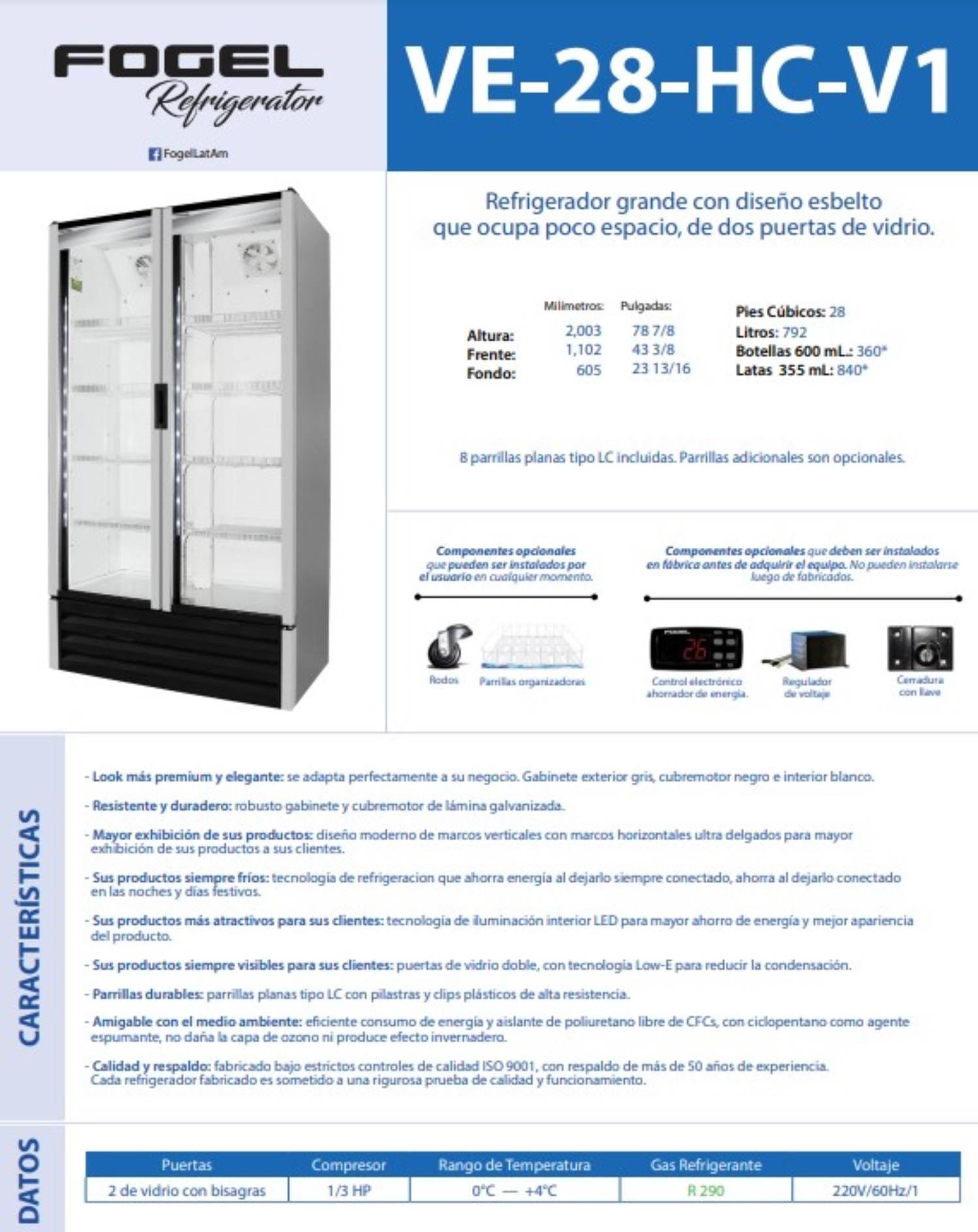 Visicooler grande de 2 puertas de vidrio, diseño esbelto que ocupa poco espacio