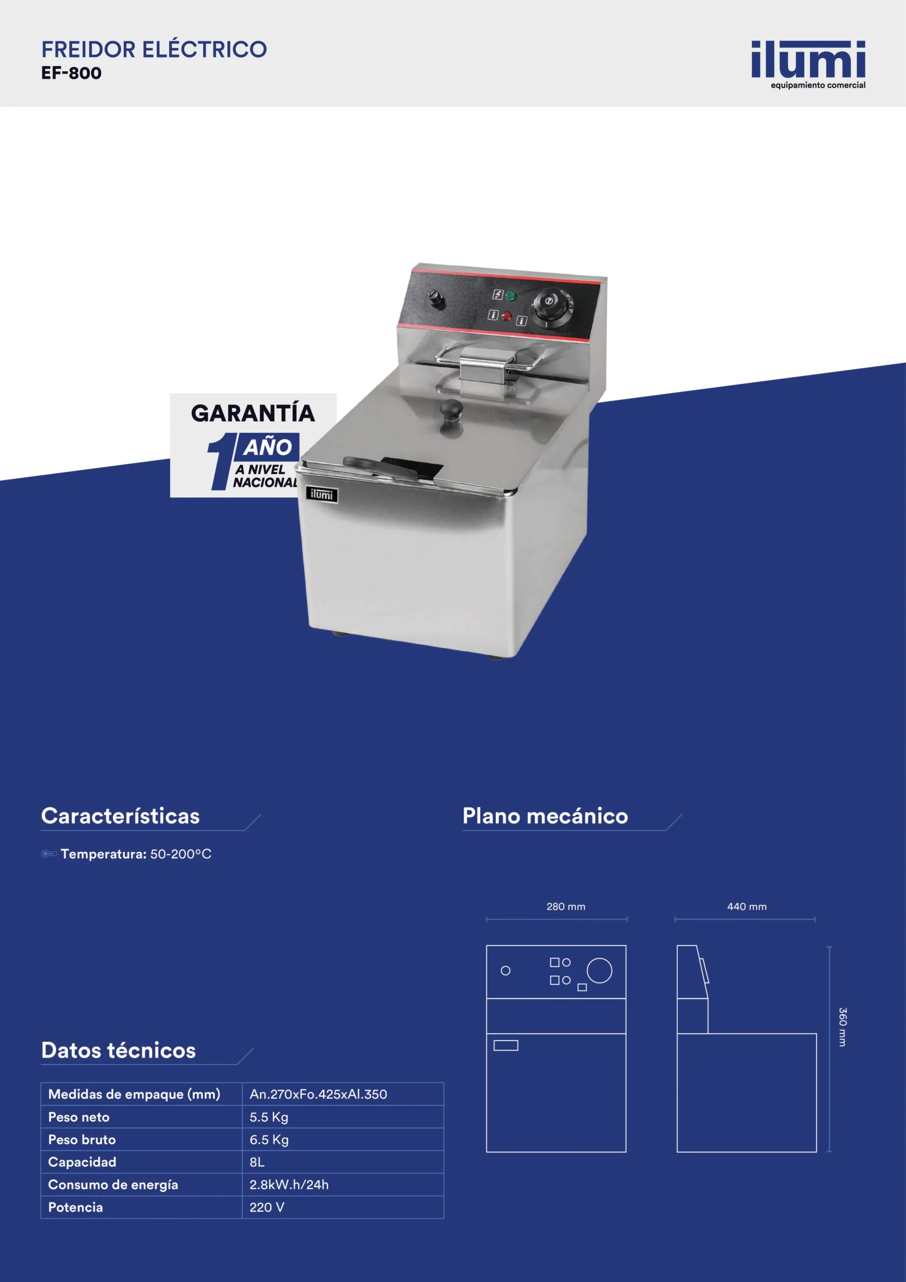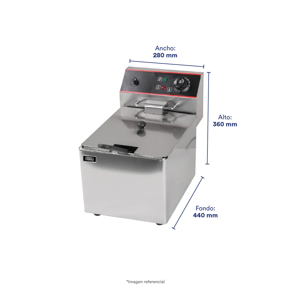 La Freidora eléctrica de hasta 8 litros es la solución perfecta para negocios gastronómicos que buscan eficiencia y calidad en un tamaño compacto. Permite freír alimentos de manera rápida y uniforme, ocupando poco espacio sin sacrificar potencia.