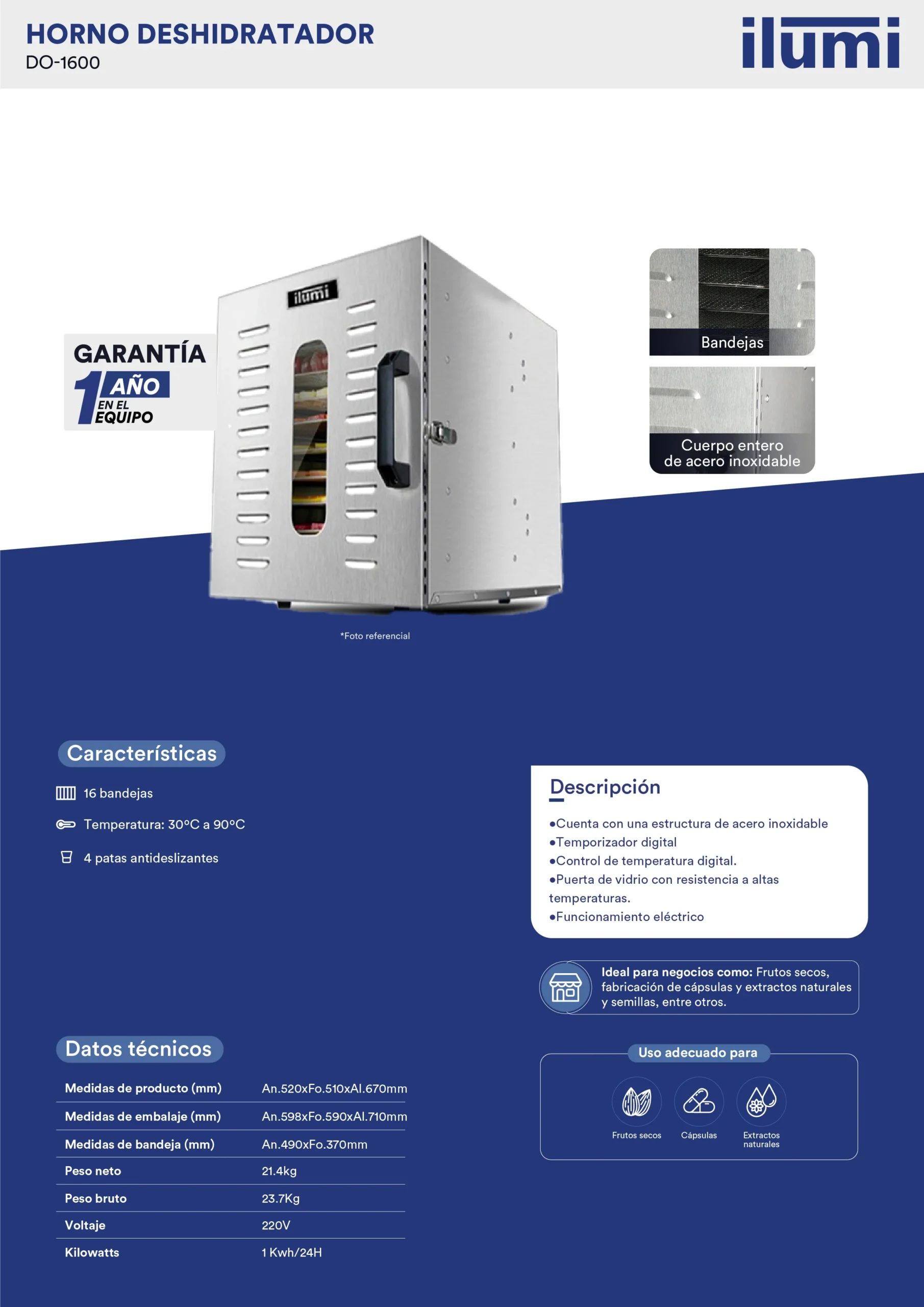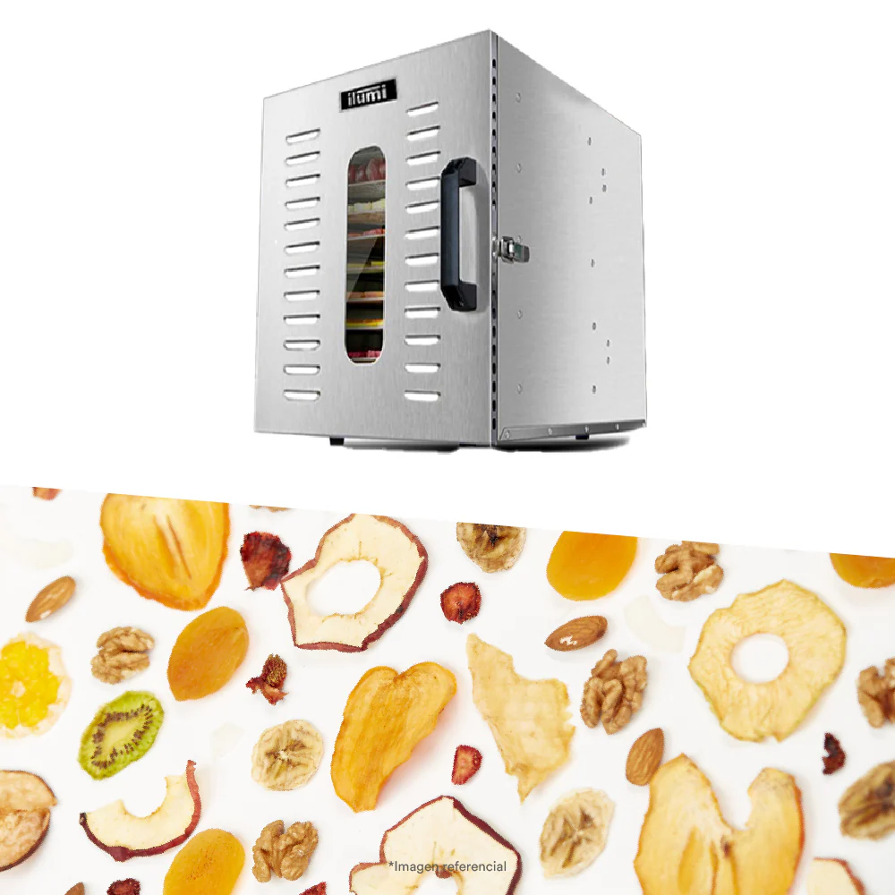 El horno deshidratador de 16 bandejas es la solución perfecta para conservar alimentos de manera natural, eliminando la humedad sin perder nutrientes ni sabor.