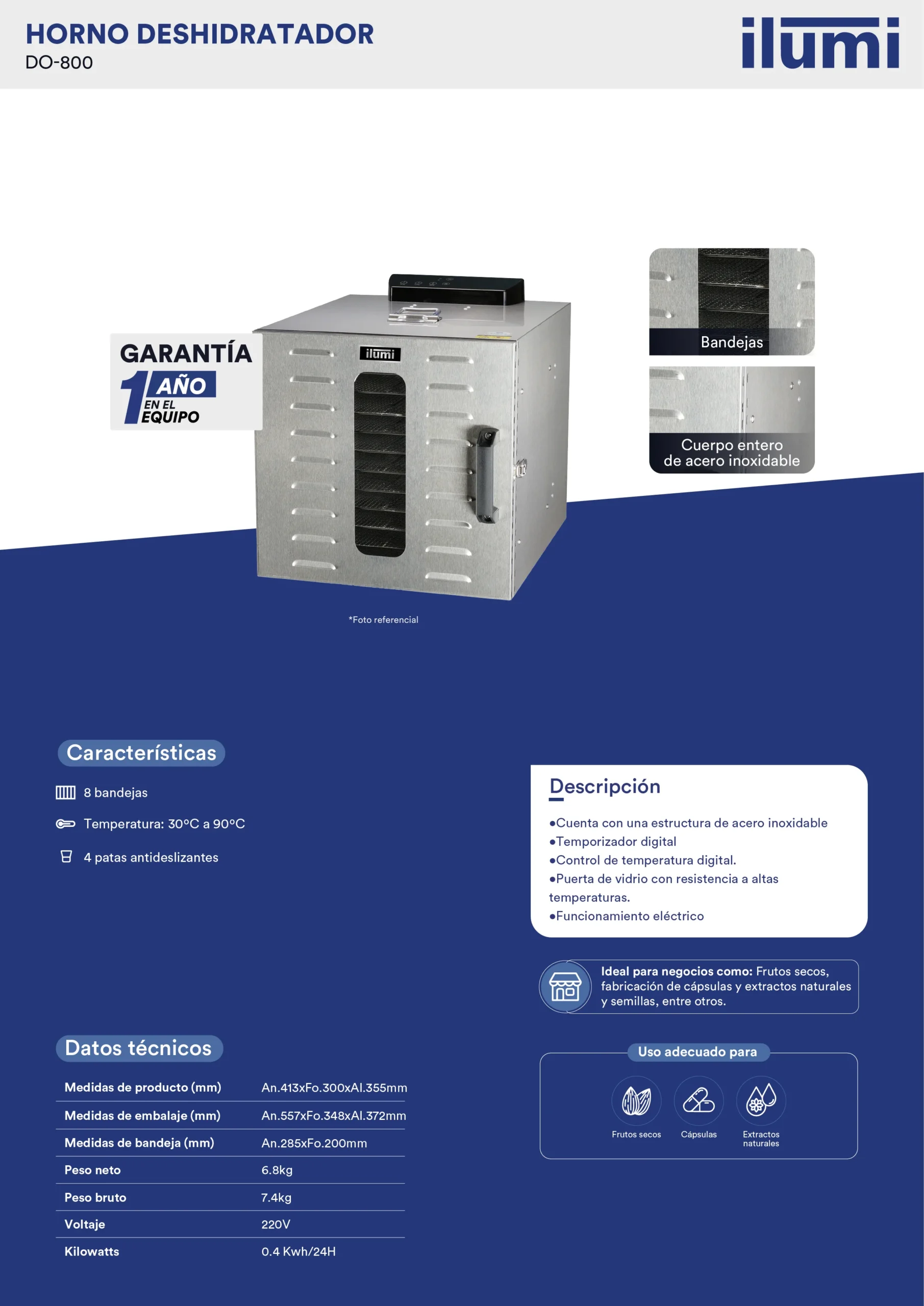 El horno deshidratador de 8 bandejas es la solución perfecta para conservar alimentos de manera natural, eliminando la humedad sin perder nutrientes ni sabor.