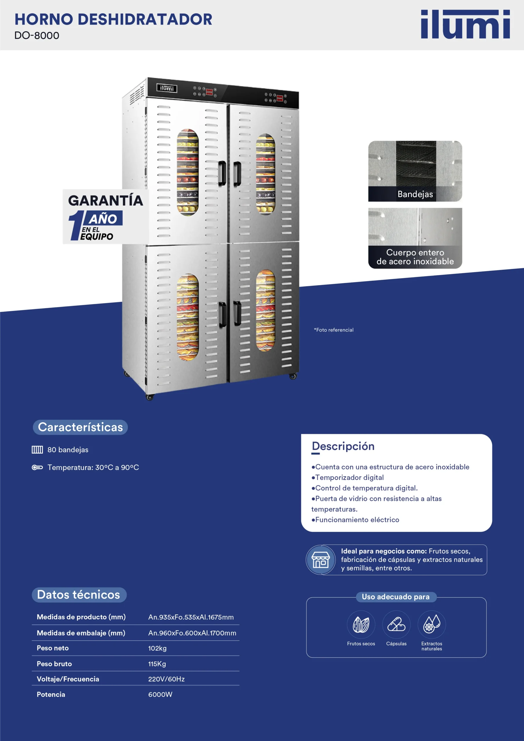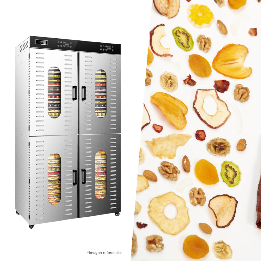 El horno deshidratador de 80 bandejas es la solución perfecta para conservar alimentos de manera natural, eliminando la humedad sin perder nutrientes ni sabor. Diseñado para negocios, este equipo permite secar frutas, verduras, carnes, hierbas y mucho más, manteniendo su calidad y frescura por más tiempo.