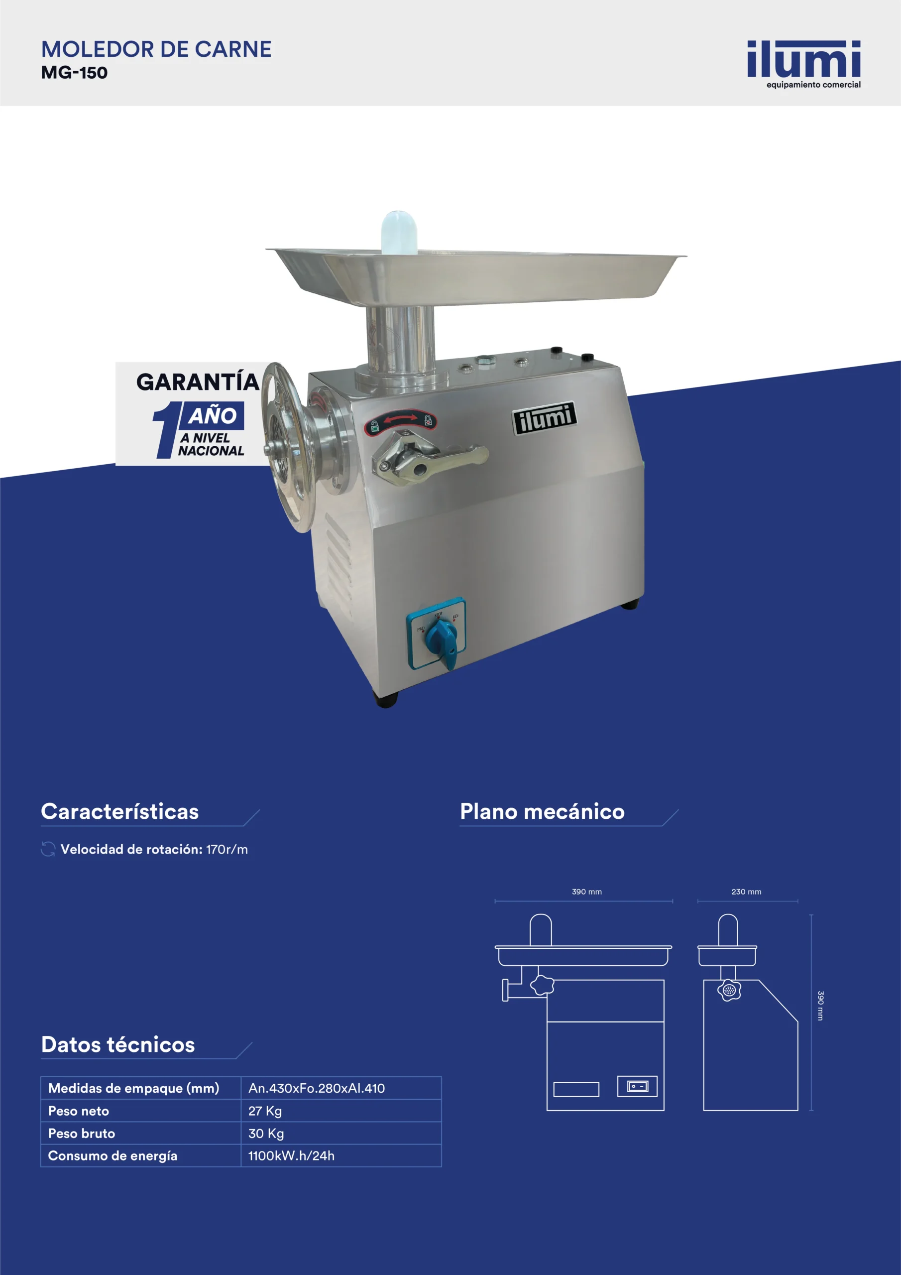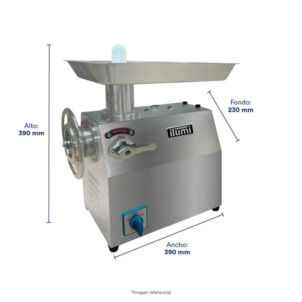 La Moledor de carne de hasta 150 Kilogramos optimiza la producción en tu carnicería o restaurante con nuestro moledor de carne de alta potencia. Diseñado para procesar grandes volúmenes de carne de manera eficiente y rápida, este equipo es esencial para cualquier negocio que busque calidad y consistencia en sus productos cárnicos.
