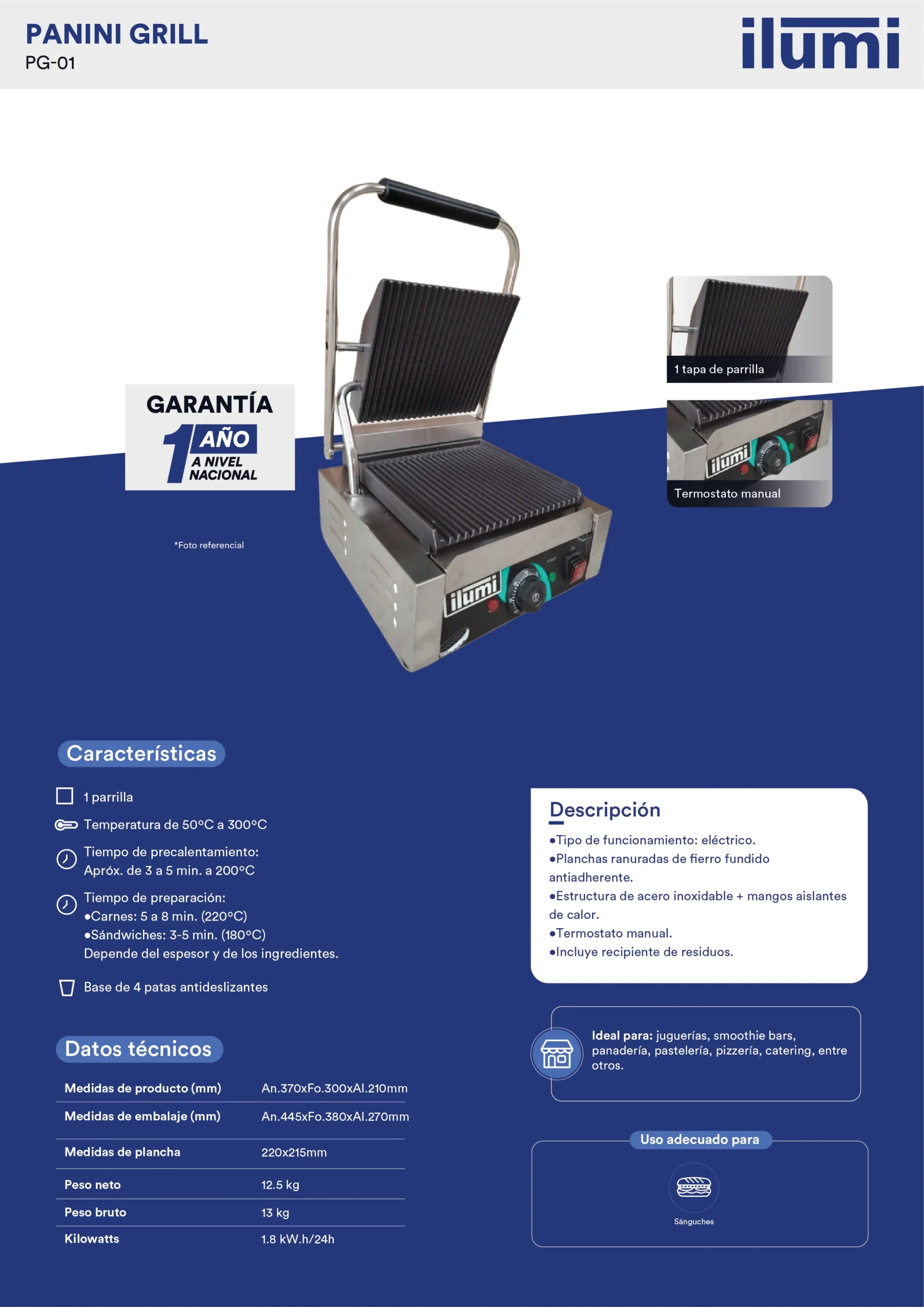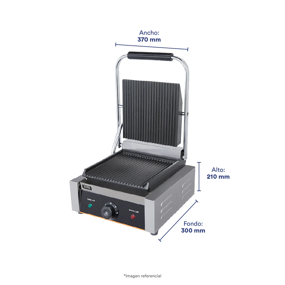 El Panini Grill de 1 disco es el equipo perfecto para sellar, tostar y dar el mejor sabor a los sándwiches en minutos. Gracias a su sistema de placas de calor, permite una cocción homogénea, logrando una textura crujiente por fuera y jugosa por dentro.
