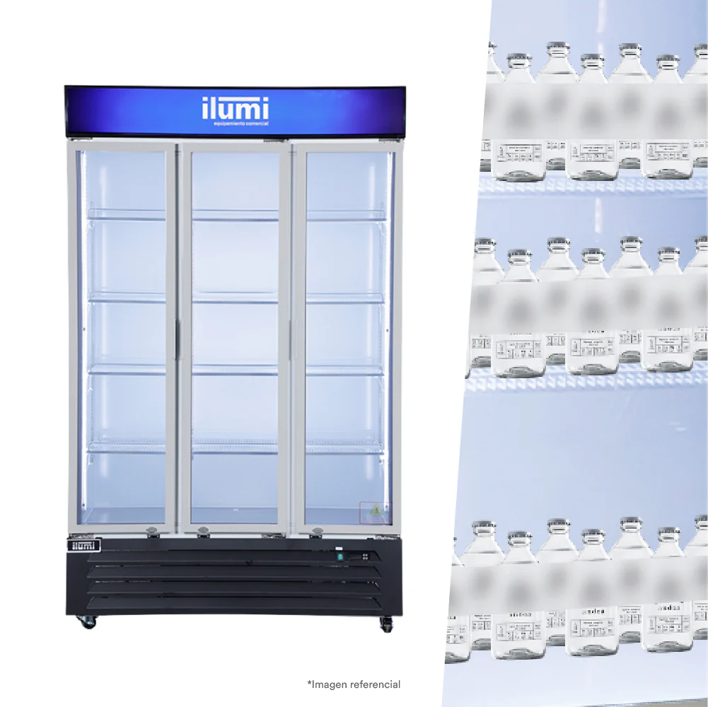 El Visicooler Fan Cooling de 950lts de 3 puertas, Diseñados para exhibir bebidas, alimentos y otros productos perecederos, con su sistema de refrigeración eficiente y puertas de vidrio, estos refrigeradores permiten a los clientes ver claramente los productos mientras se mantienen frescos y a la temperatura ideal.