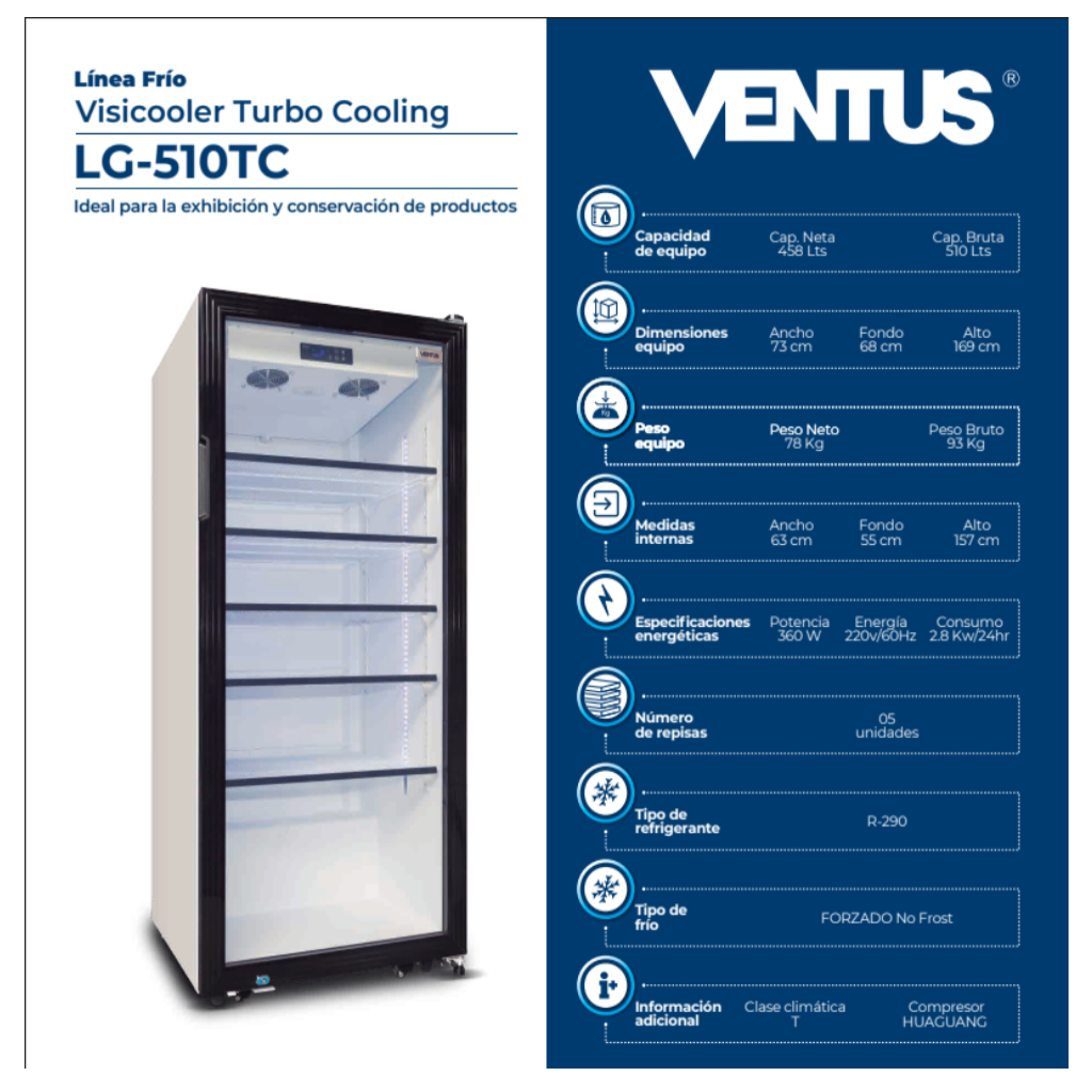 Ideal para la exhibición y conservación de productos Mod. LG-510TC