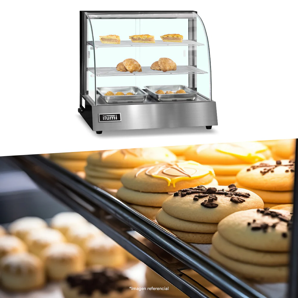 Vitrina caliente pequeña de 2 bandejas mantiene tus alimentos calientes y listos para servir con nuestra vitrina caliente. Con su construcción robusta y diseño elegante, es una adición esencial para cualquier establecimiento que desee ofrecer alimentos calientes de manera continua y eficiente.